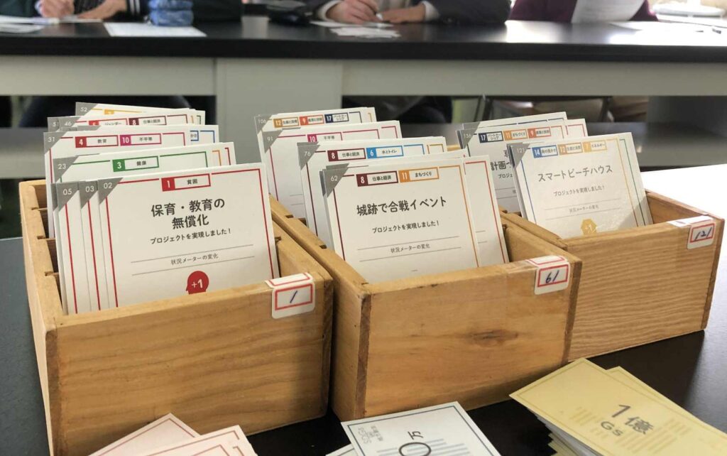 SDGs de 地方創生ゲームはSDGsの考え方と地域づくりの結びつきをテーマとしたカードゲームです。