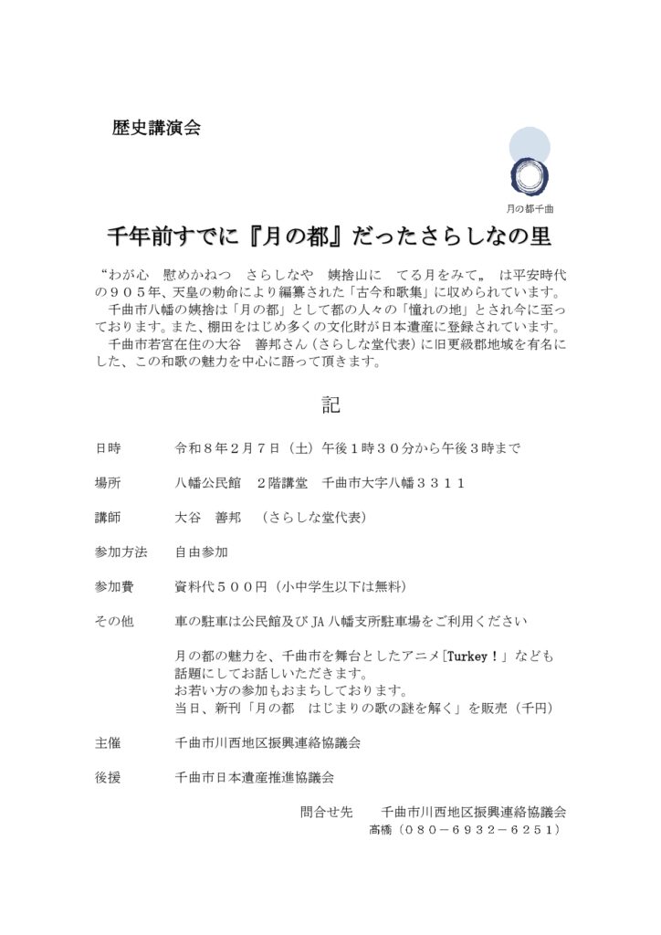 千曲市若宮在住の大谷善邦さん(さらしな堂代表)に旧更級郡地域を有名にした、この和歌の魅力を中心に語っていただきます。