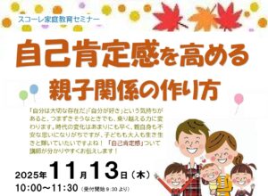 スコーレ家庭教育セミナー「自己肯定感を高める親子関係の作り方」New!!